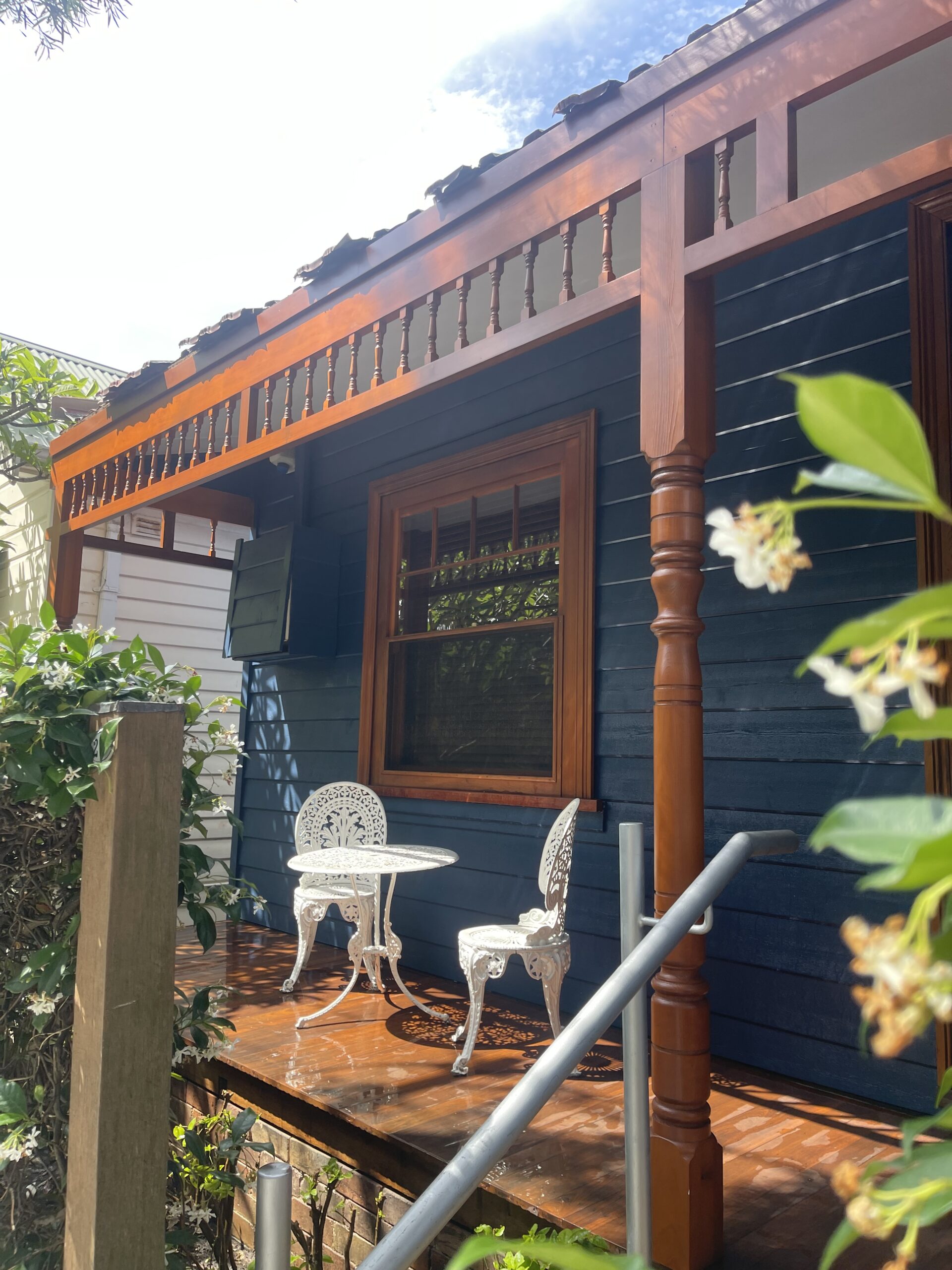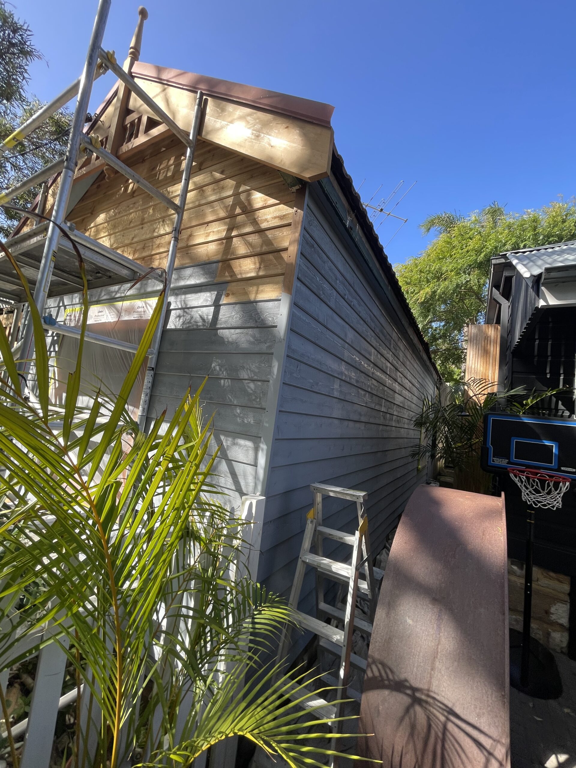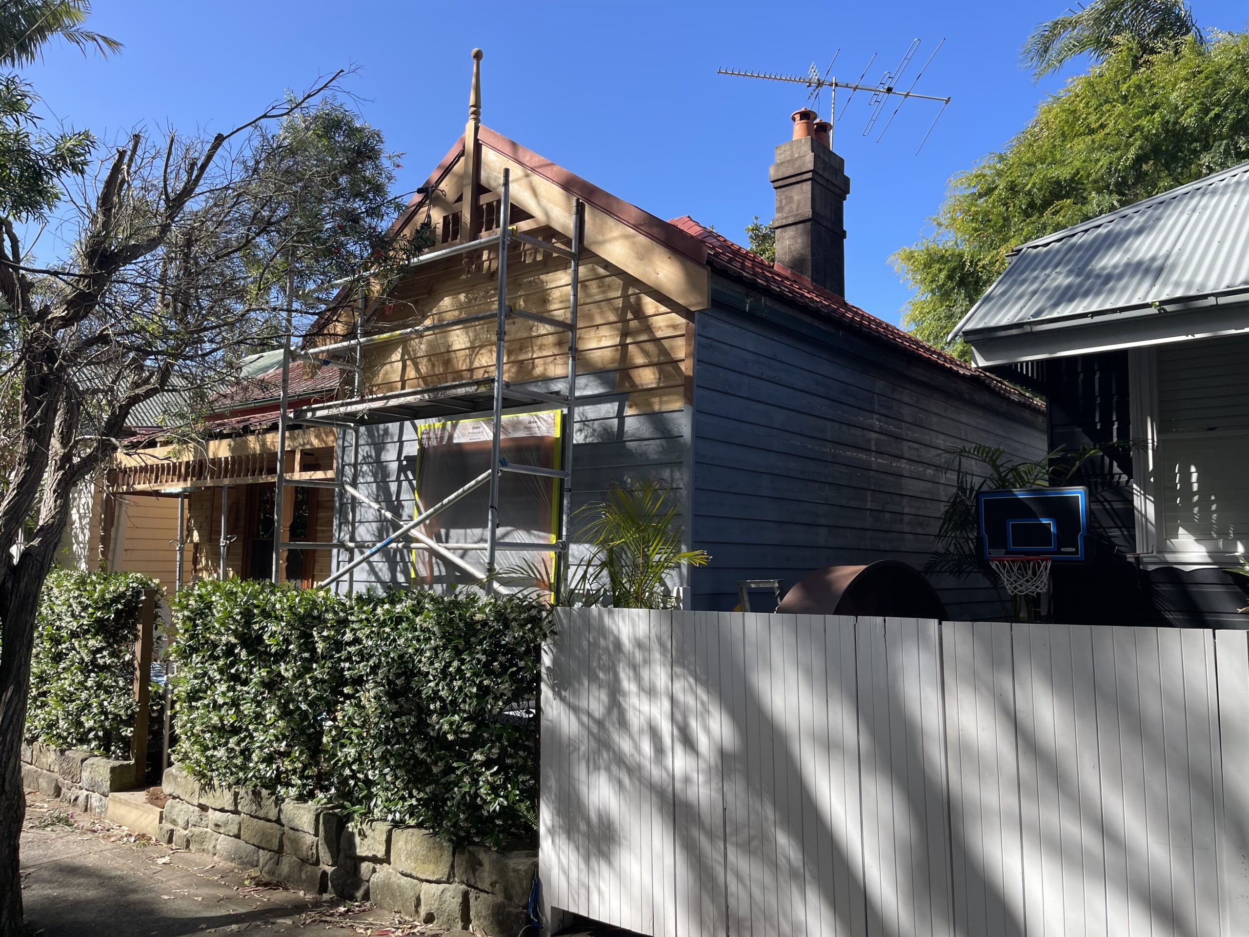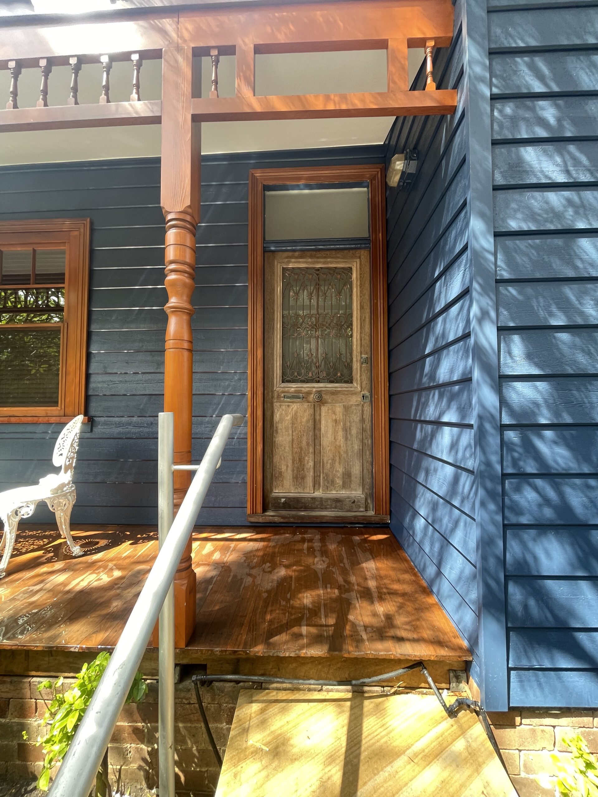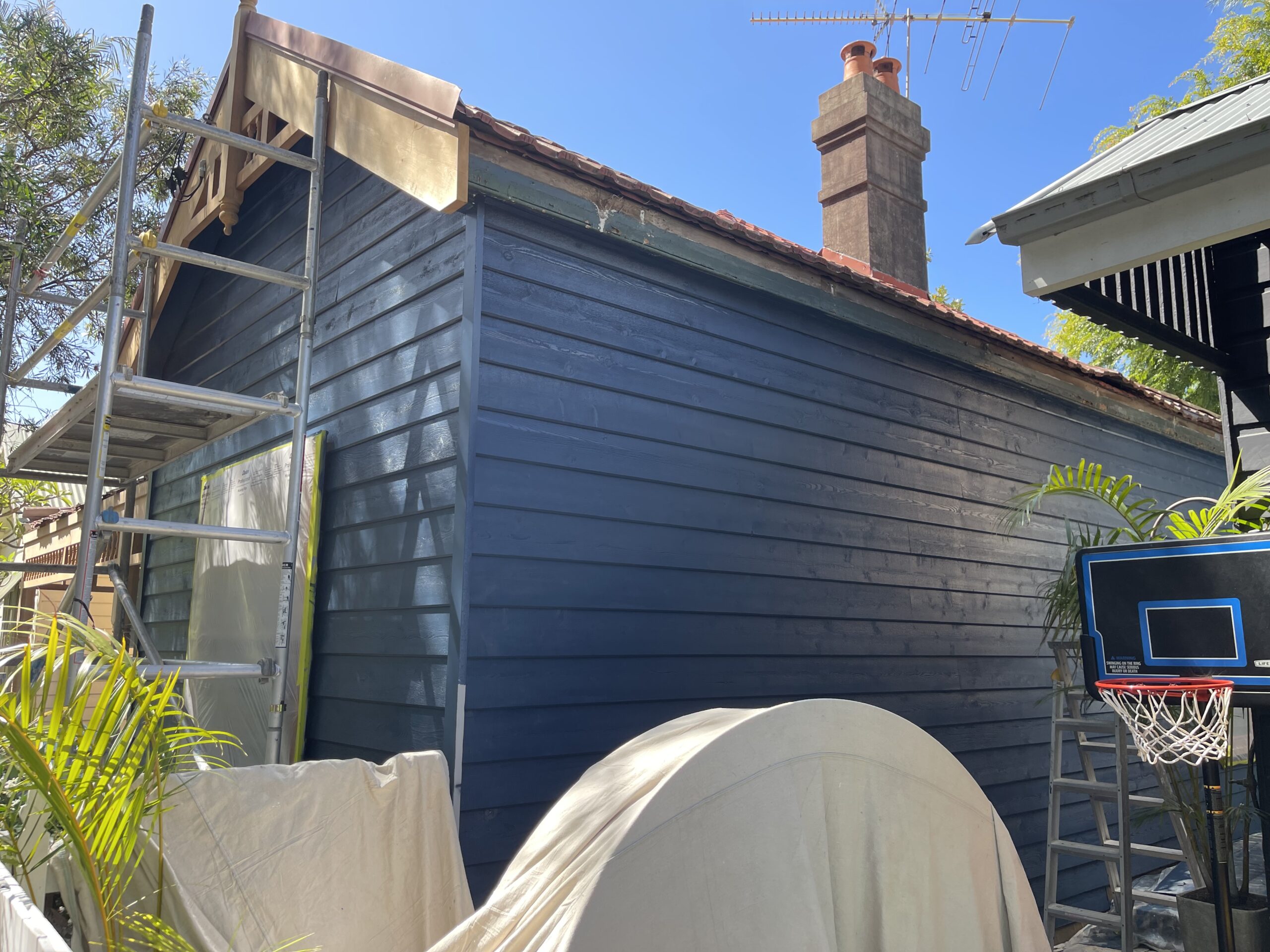Exterior painting completed for a fisherman’s cottage in Camp Cove featuring newly installed cedar weatherboards. The project involved preparing and finishing the new timber cladding to provide a durable protective coating while maintaining the natural character of this classic coastal home.