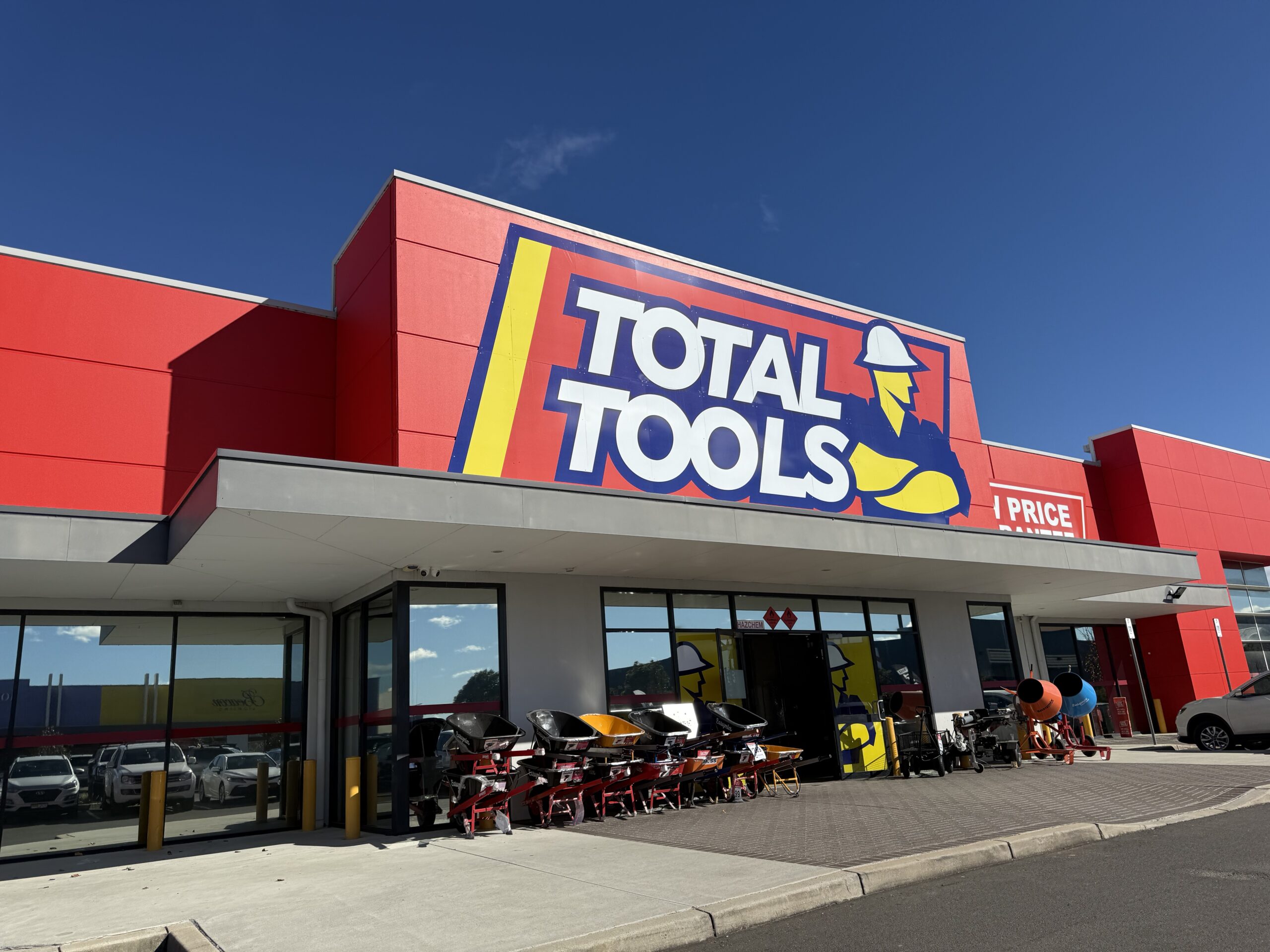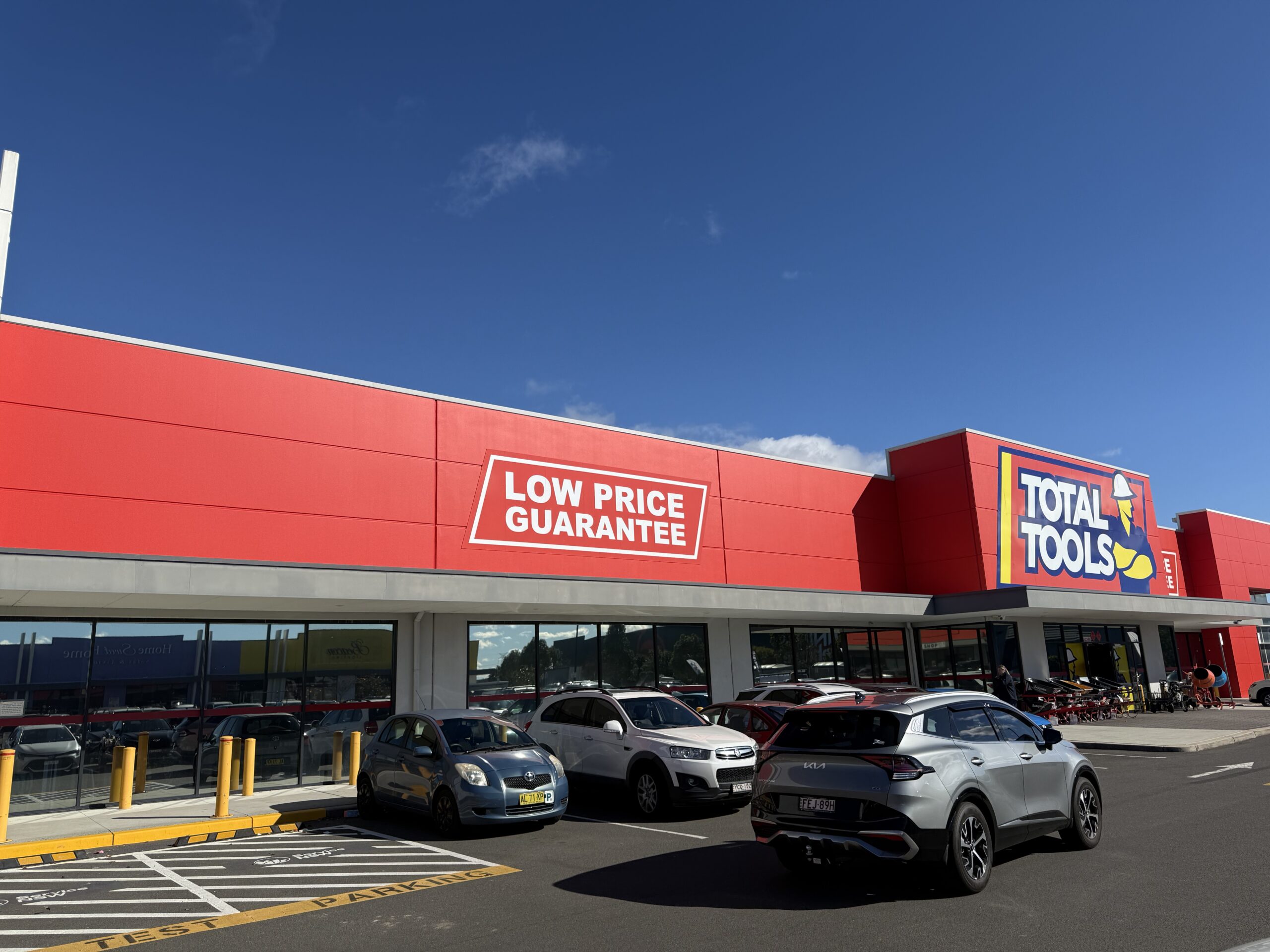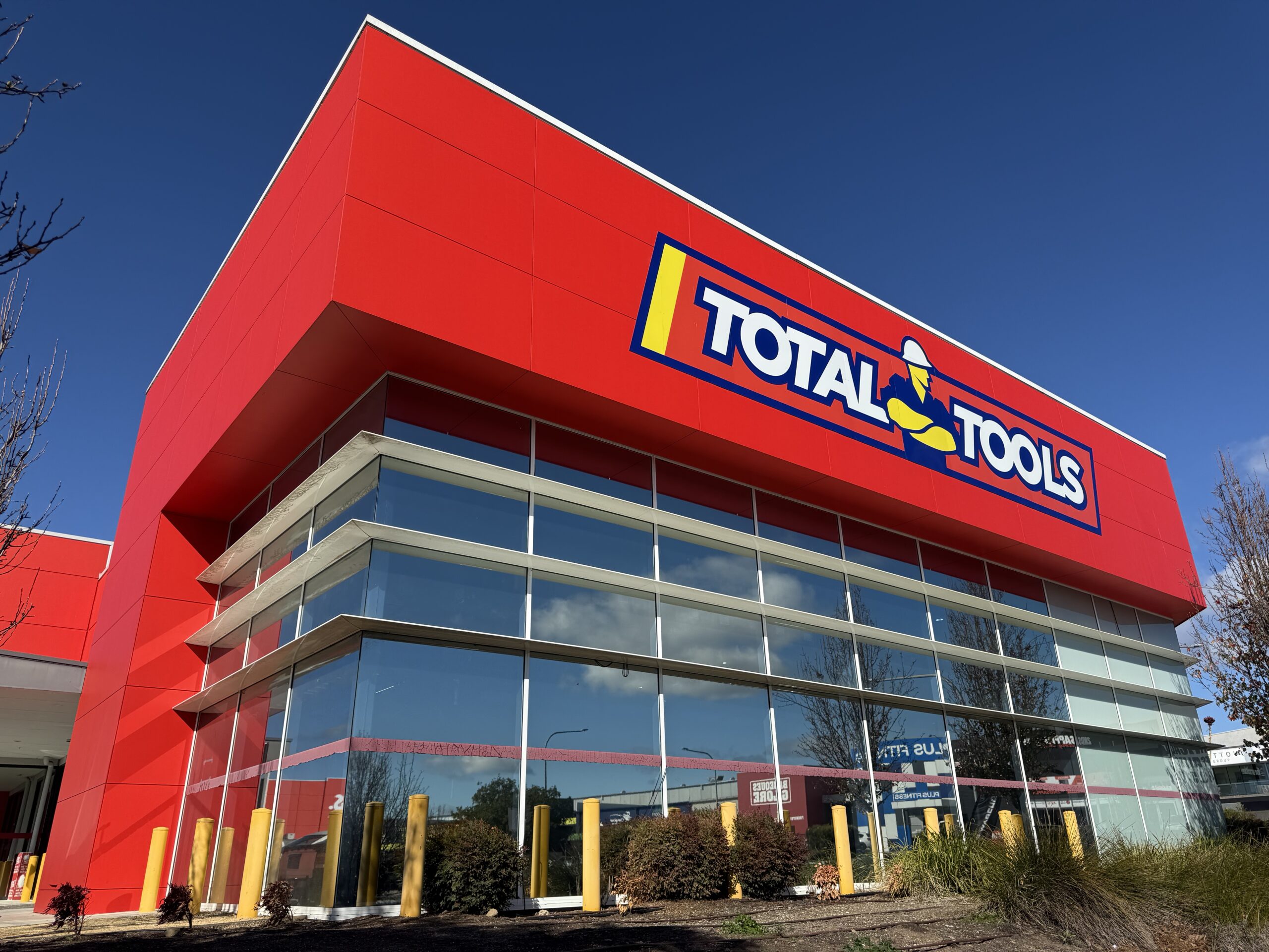 Full exterior repaint completed for the Total Tools store in Gregory Hills as part of a major store rebranding project. Works included removal of the existing signage and repainting the entire exterior facade to align with the updated brand colour palette ahead of new signage installation